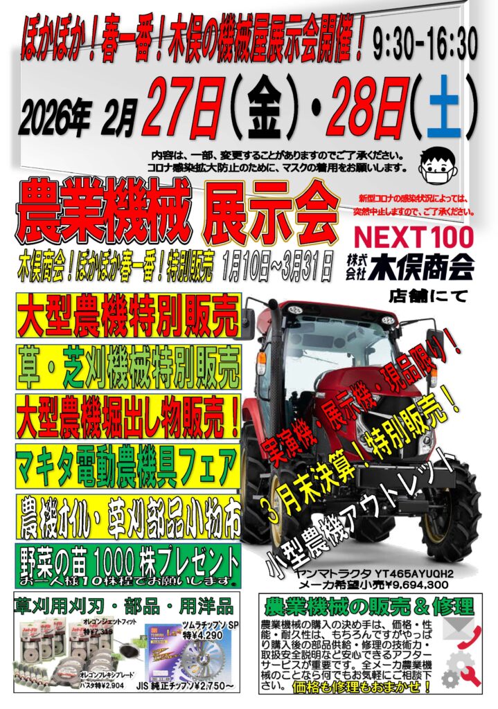 豊作感謝!恒例!秋の!木俣の機械屋特別販売!